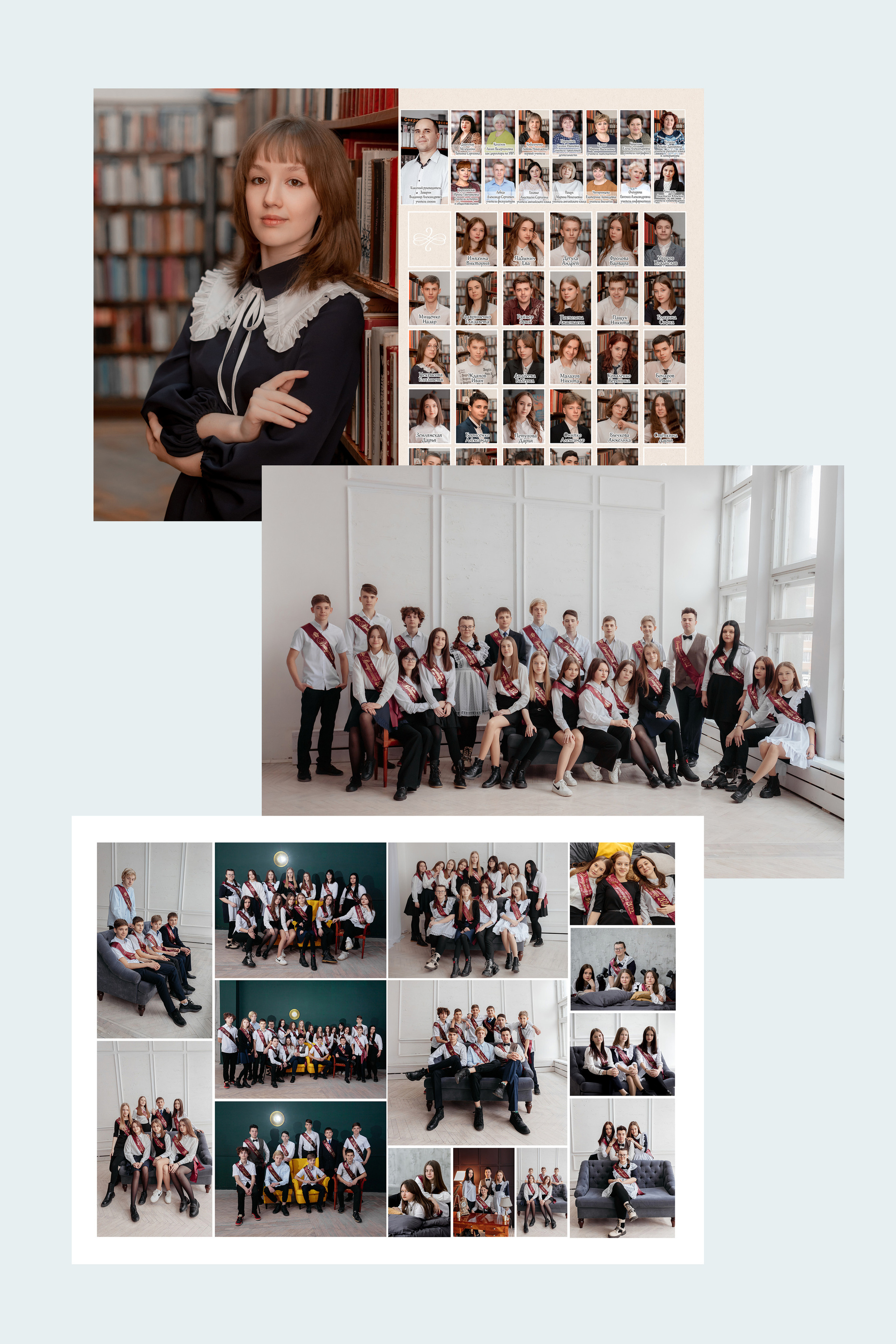 Фотографии класса общие (все фото в альбом выбирает фотограф) или индивидуальные (фотографии отбирают дети)